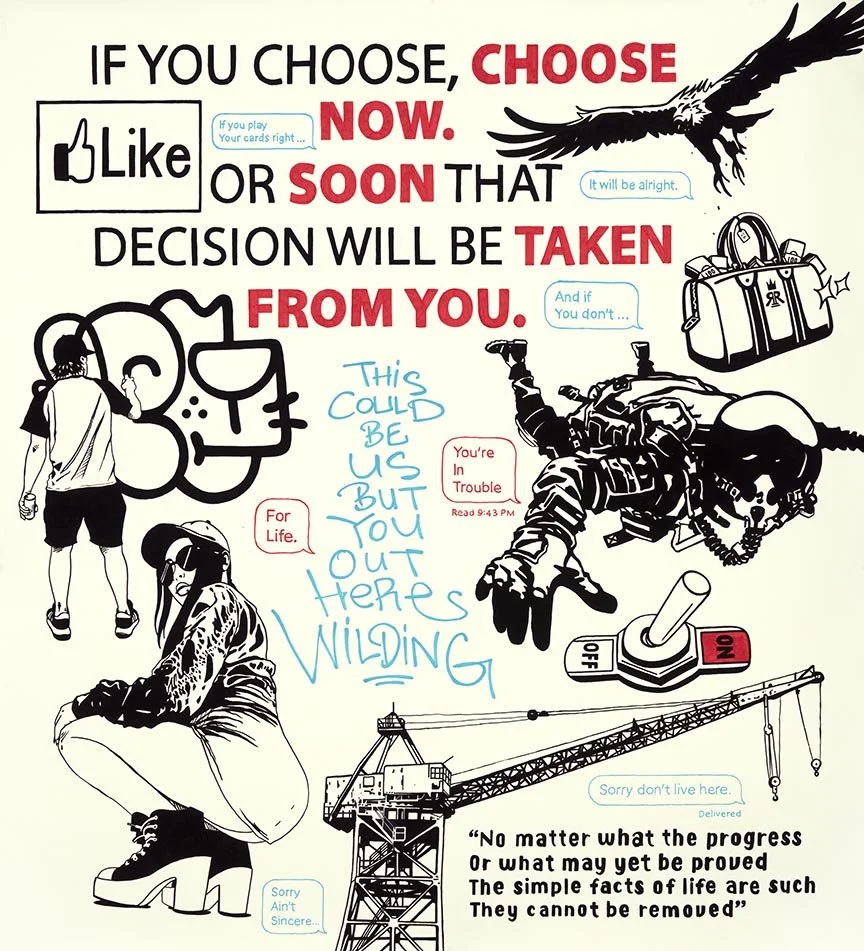 Real friends #5, 41 in by 44 in, Ink on paper, 2020