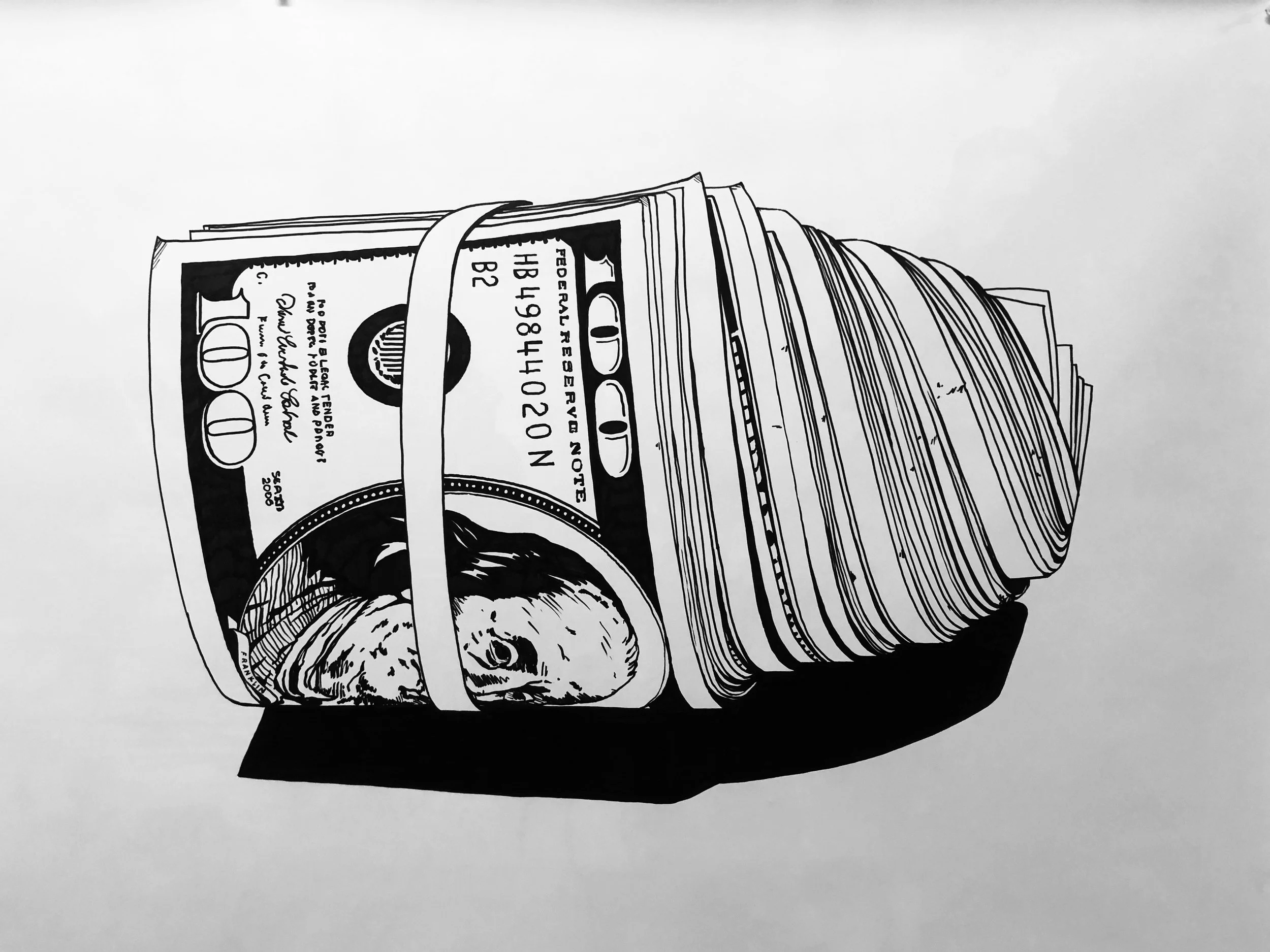 Money roll #4, 30 in by 36 in, ink on paper. 2020